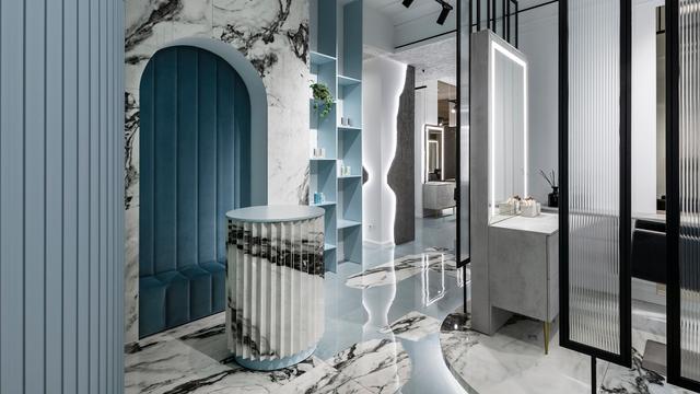La colección Medley by Ergon, en formato 60×120, de color Green Rock, ha demostrado ser la solución ideal para conseguir locales de grandísimo impacto estético, con opciones cromáticas inéditas y memorables. El acabado Rock, que interpreta el terrazzo alla veneziana en clave contemporánea, se caracteriza por fragmentos monocromos de forma irregular en contraste con el mortero de cemento que los enmarca. El uso de este motivo particular en el suelo y las paredes ha sido la baza ganadora del proyecto: «Los azulejos nos hacían pensar en pedacitos de gofres rosas: fue amor a primera vista».