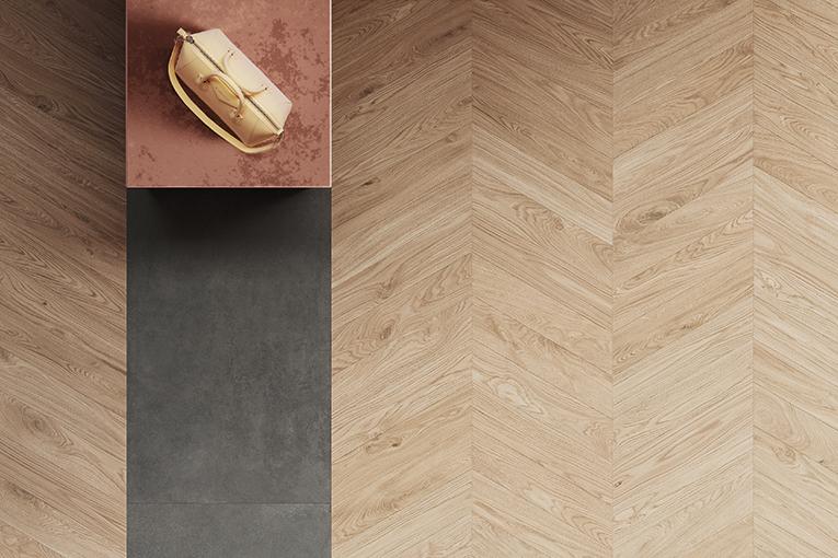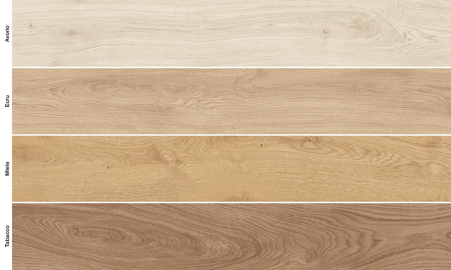Los nudos y el veteado se convierten en los protagonistas de esta serie dedicada a la belleza de la madera: Mimesis se presenta en cuatro colores naturales y envolventes —Avorio, Ecru, Miele, Tabacco— y, como se deduce de su nombre, busca la absoluta fidelidad a la materia en la que se inspira en términos de rendimiento estético, táctil y cromático, gracias a la tecnología Real, que combina la estructura, la apariencia gráfica y el acabado para aportar un aspecto realista y natural a las superficies.