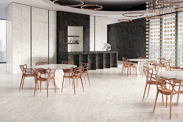 Los pavimentos de gres efecto mármol constituyen una opción estilística elegante y espléndida, ideal para aportarle refinamiento a cualquier ambiente.