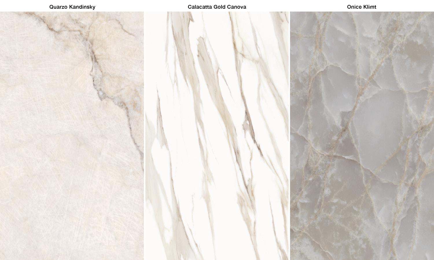 El proyecto nace de la idea de releer en clave contemporánea un material de encanto imperecedero como el mármol, mediante una selección nada convencional de formatos, acabados y elementos decorativos. Tres nuevas propuestas de mármoles naturales y esmerilados hallan su máxima expresión en los formatos de grandes placas, donde las vetas son protagonistas absolutas. Formas fluidas, tonalidades cromáticas y matices cadenciosos del veteado convierten Tele di Marmo Reloaded en auténticas obras de arte.