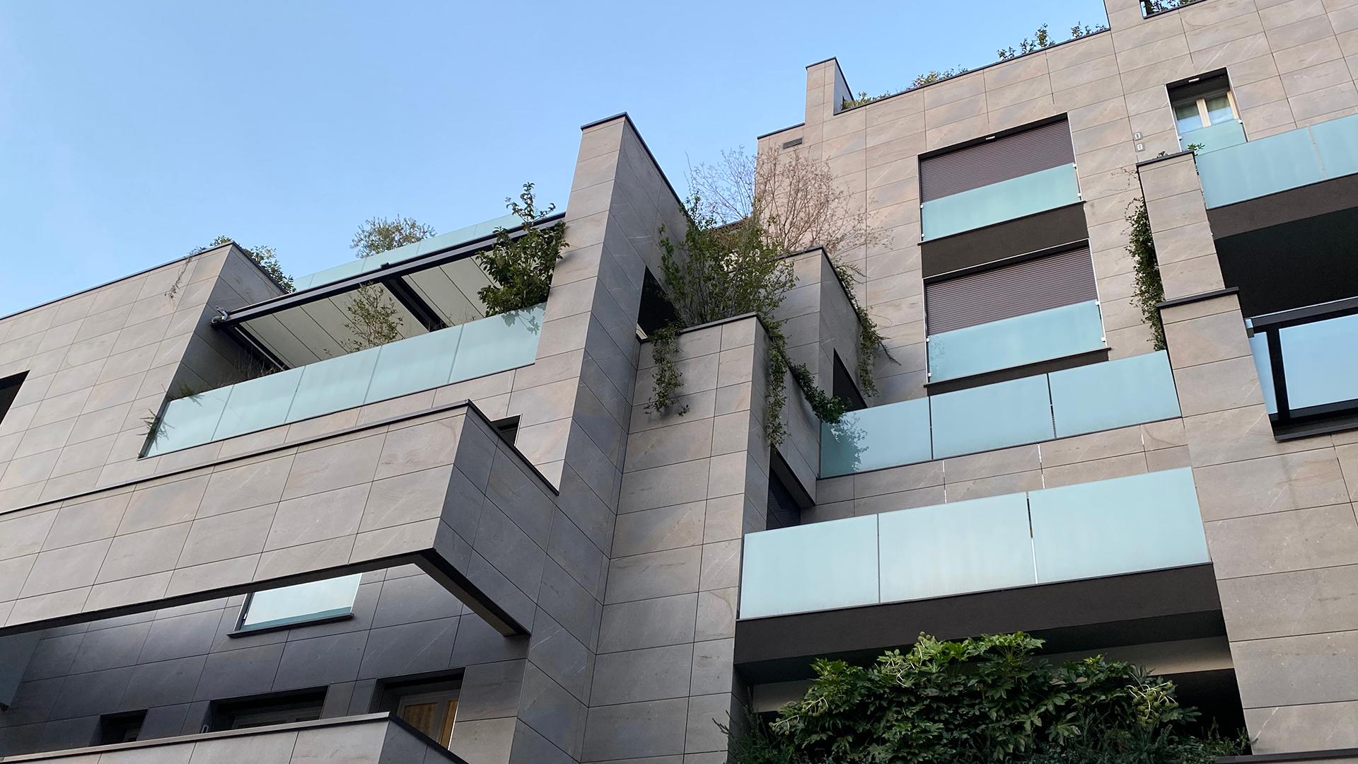 Además de ser utilizadas para revestir superficies, las colecciones de Emilgroup, en este caso, también se han empleado en el innovador sistema de fachadas ventiladas, brindándole al complejo una imagen moderna y elegante, sin menoscabar sus elevadas prestaciones técnicas.