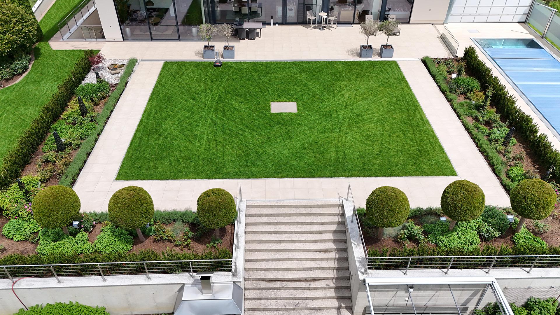 En el hermoso jardín de esta familia, se planificó y eligió el sistema Pave and Go para una superficie de aproximadamente 200 metros cuadrados. El pavimento realizado con Ardesia Gold transforma todo el espacio exterior, dando a la familia la sensación de tener su propia playa de arena en casa.